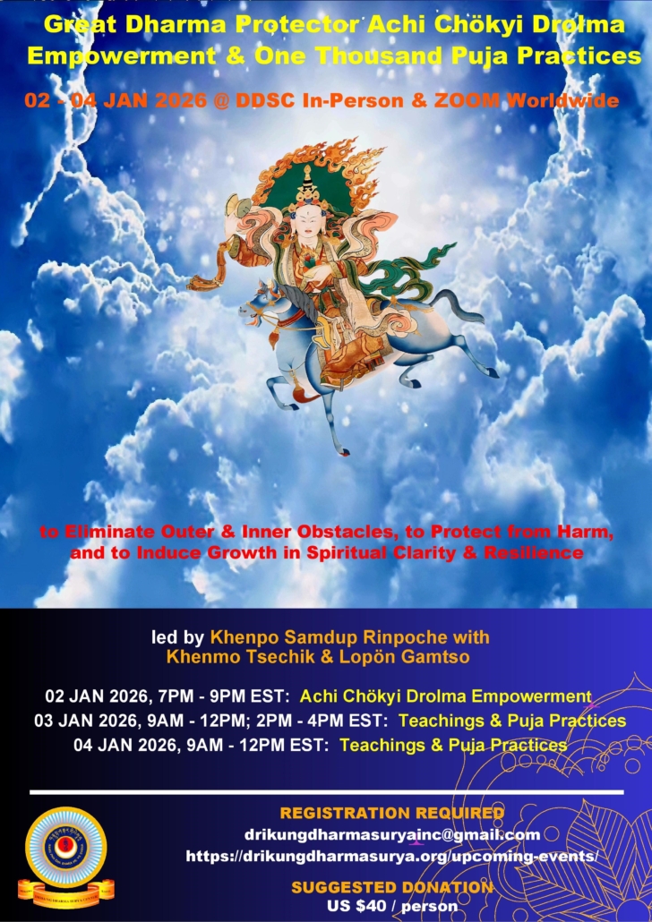 * 02 JAN 2026 (Friday), 7PM – 9PM EST: Achi Chökyi Drolma Empowerment
