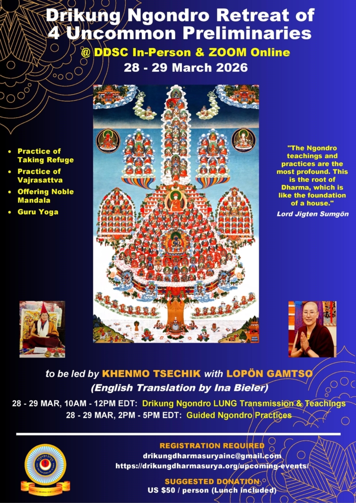 28 – 29 MAR, 10AM – 12PM EDT: Drikung Ngondro LUNG Transmission & Teachings